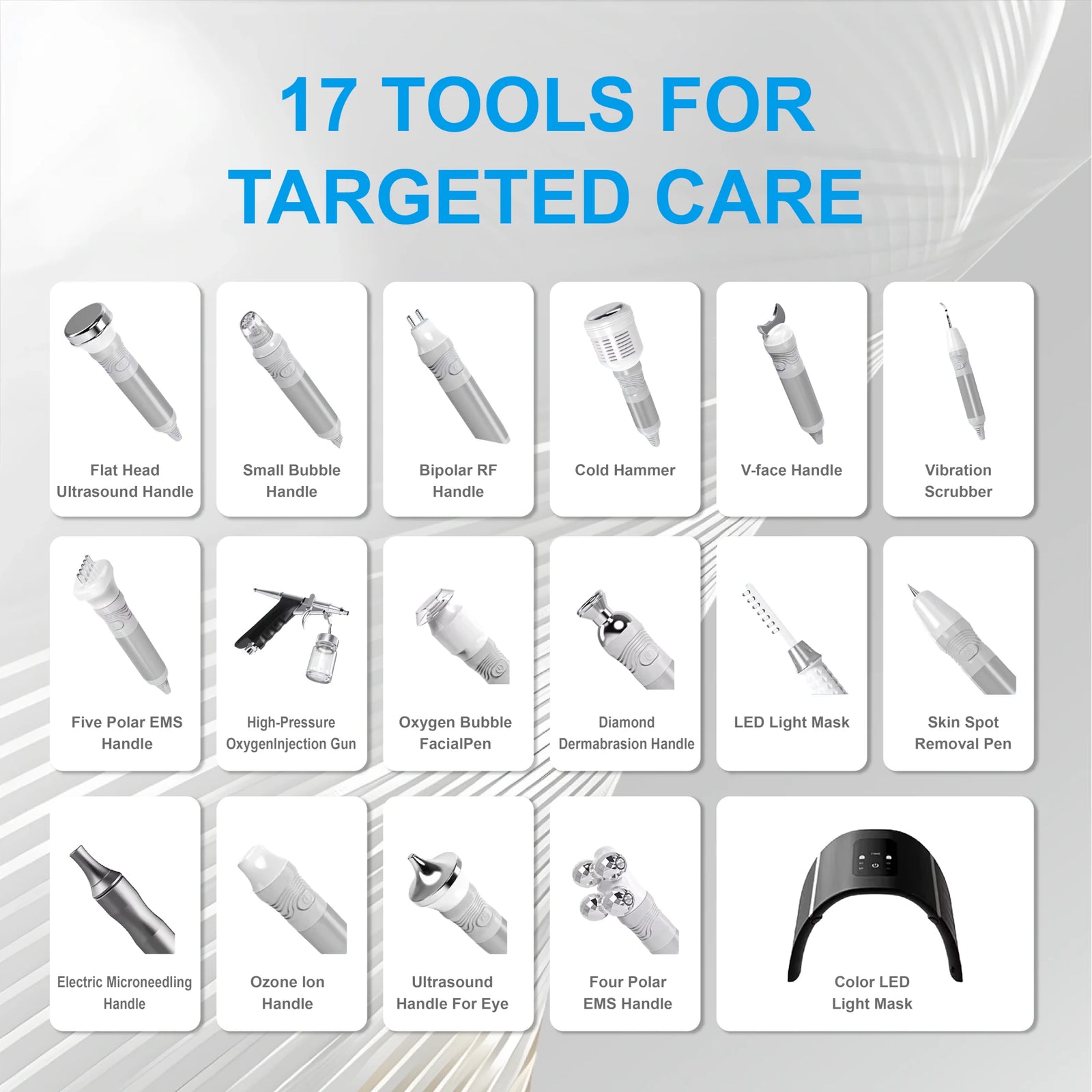 These add-ons work in tandem to address various skin concerns. The AquaViva 17-in-1 offers visible anti-aging, oil control, skin brightening, and acne treatment.AquaViva 17-in-1 Hydro Facial System for All Skin Concerns