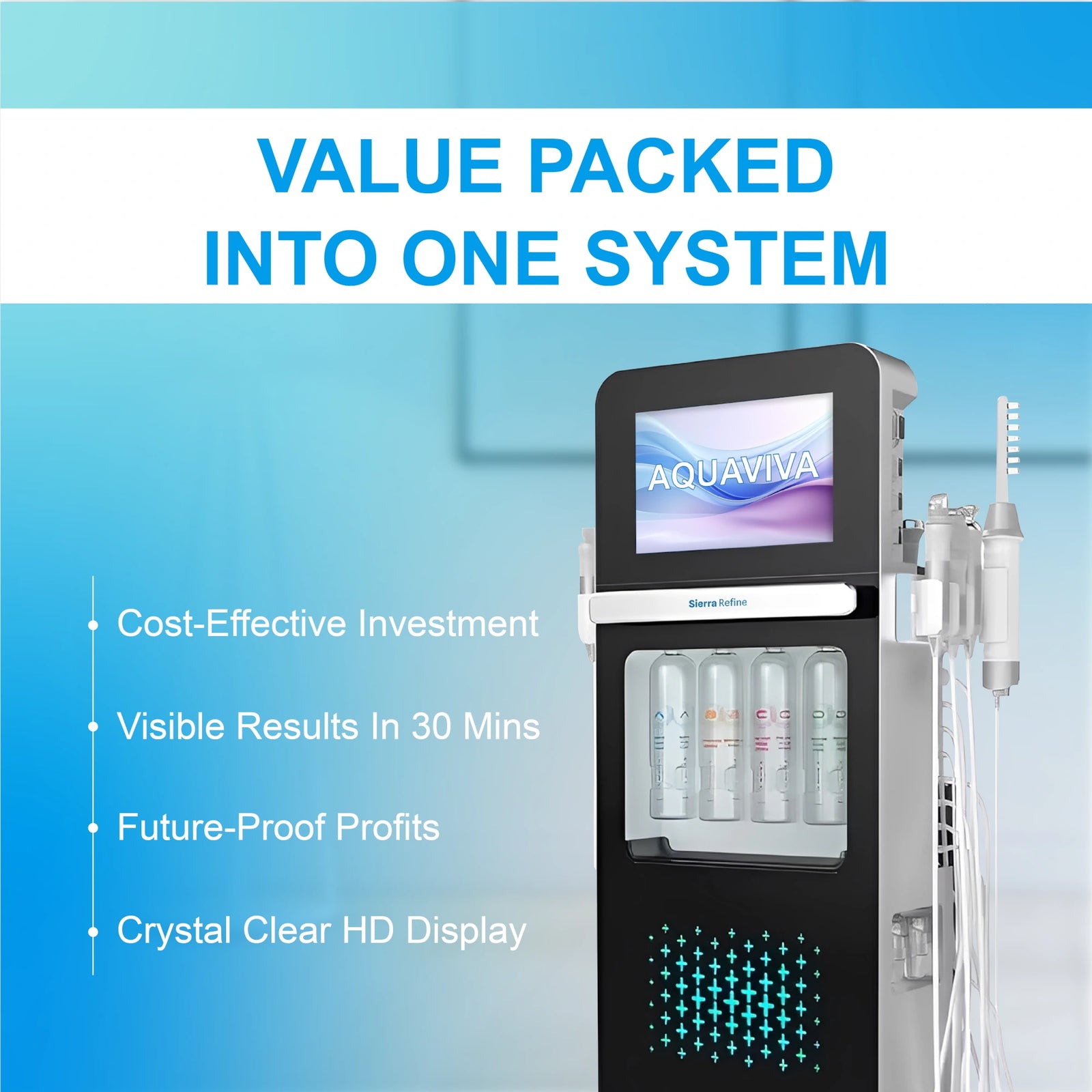 We get that feeling — it’s exactly what we never wanted you to experience. That’s where Sierra Refine’s reliable AquaViva 17-in-1 hydro facial machine comes in.