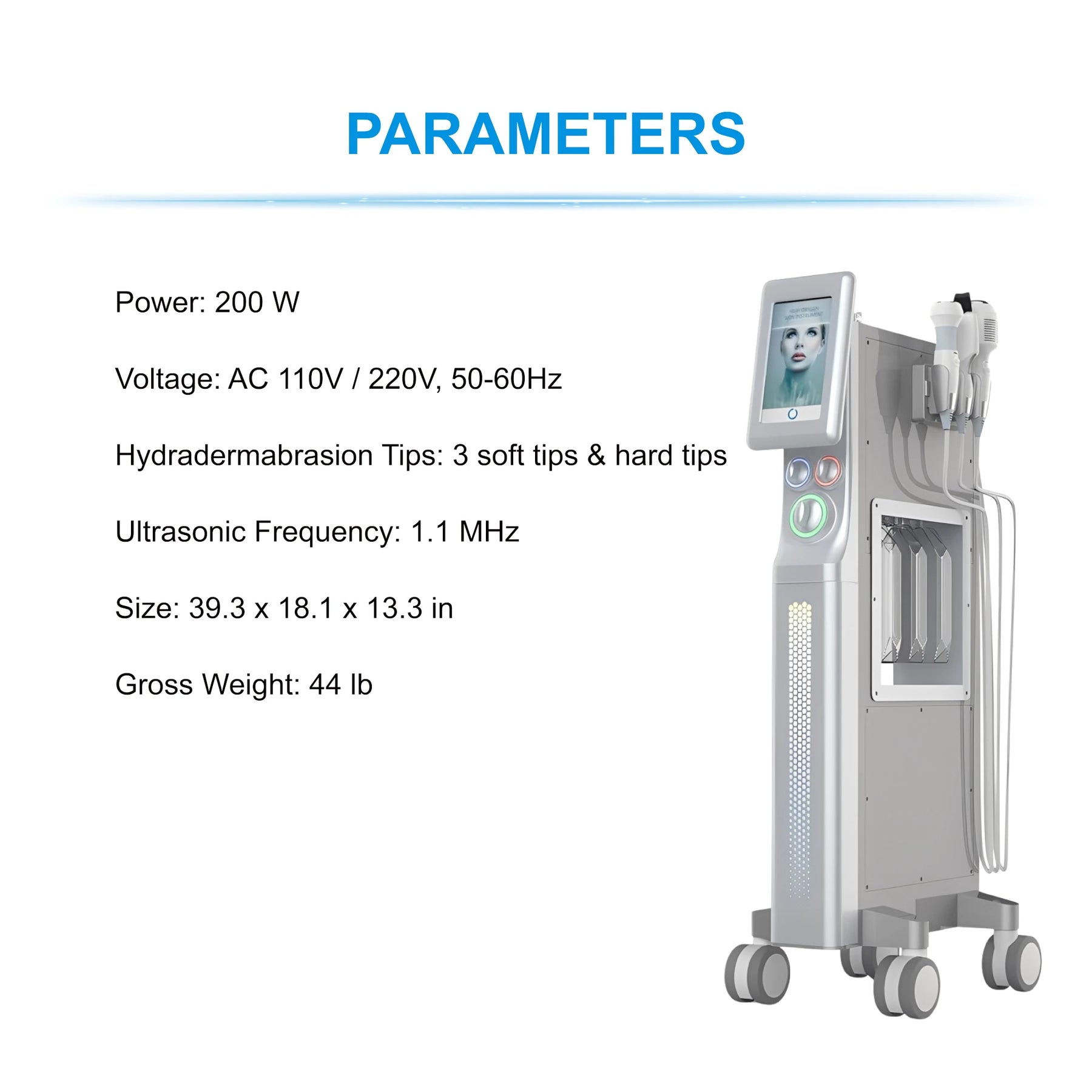 - Extra soft and hard tips on standby for the hydro dermabrasion handle
