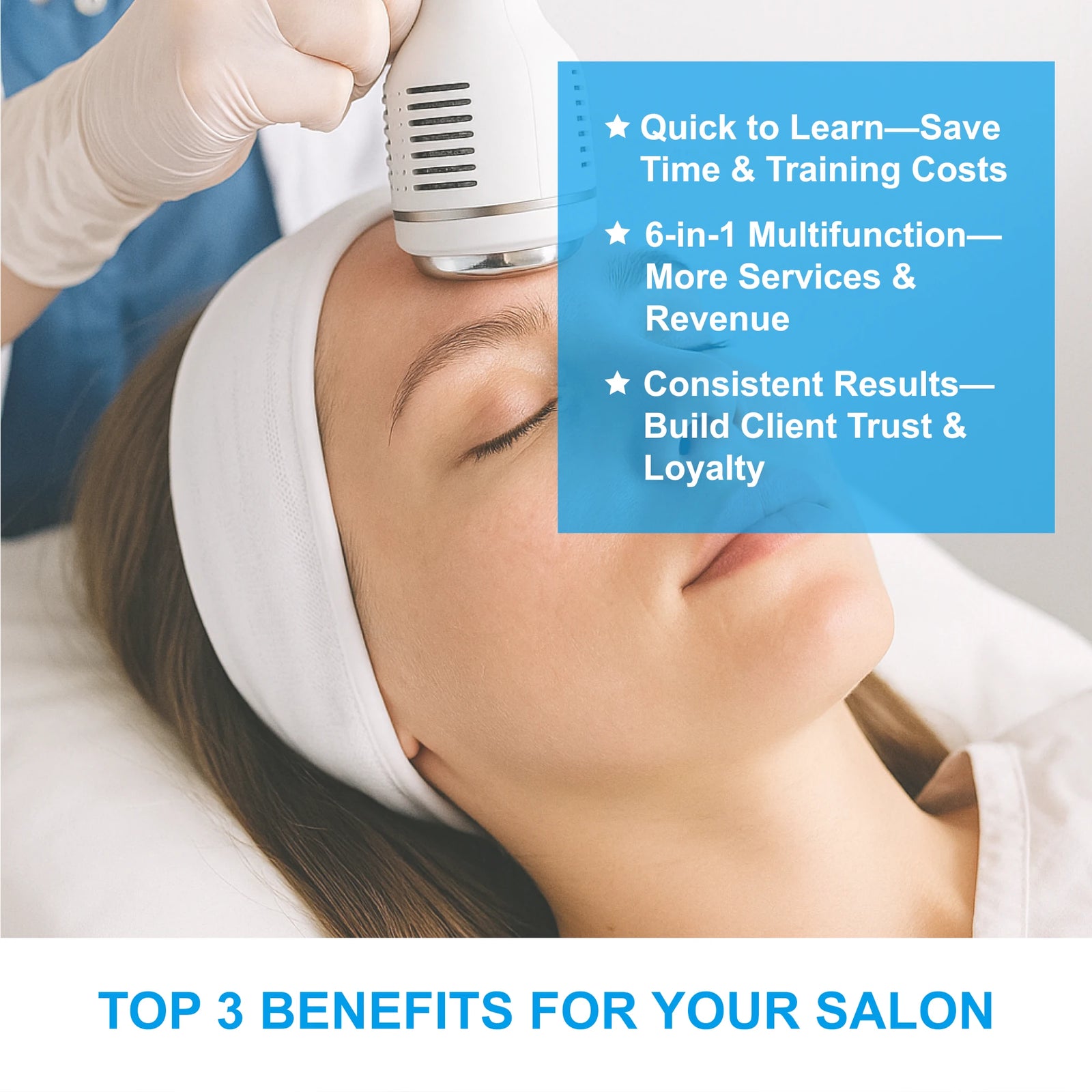 Unreliable devices lead to poor client experience, missed bookings, and long-term reputation damage. The Aquordis 6-in-1 powerful machine works to address these concerns. With high-quality handles and a carefully maintained control system, it delivers consistent performance. It helps boost your operational efficiency and allows your team to offer top-quality care.