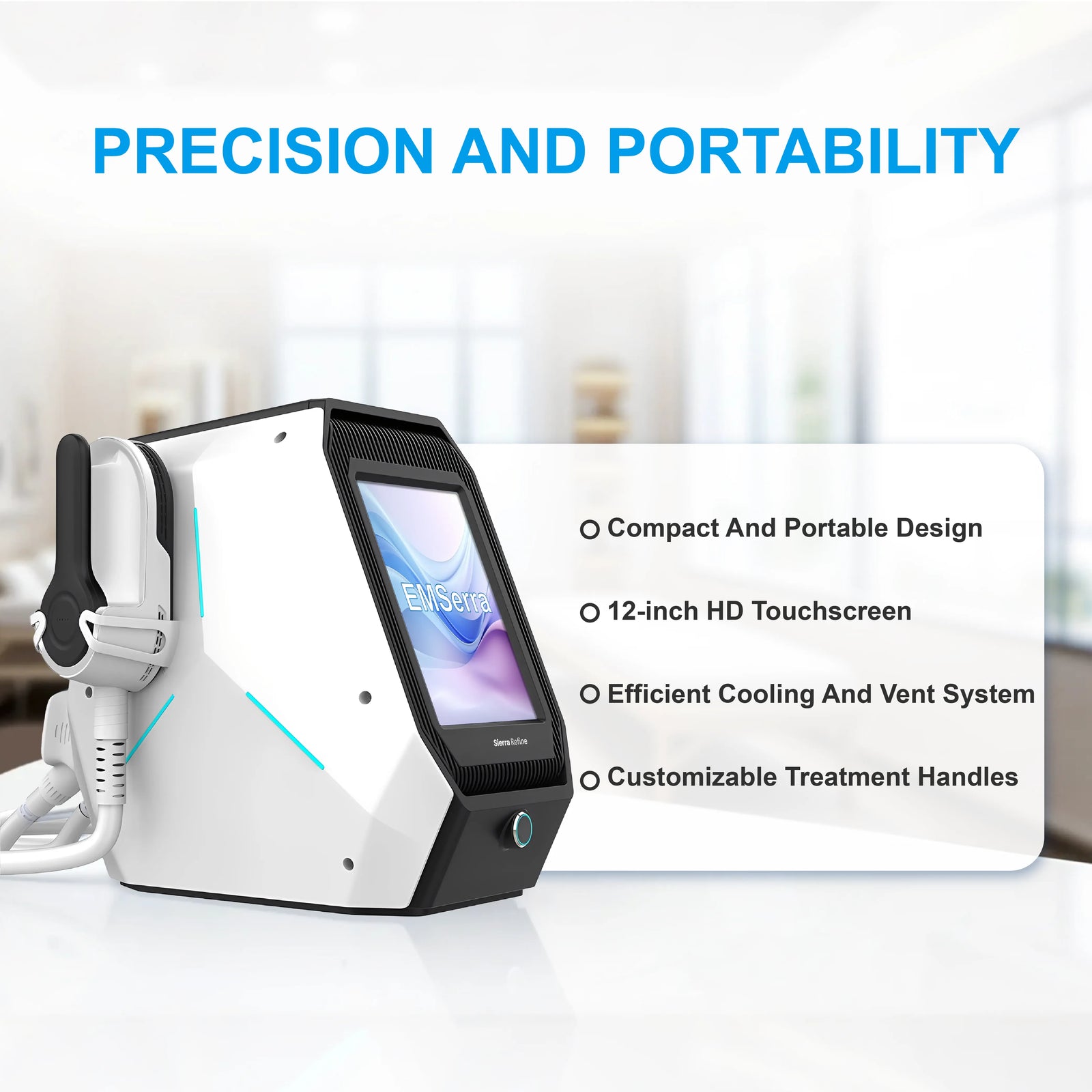 The desktop EMS machine enables easy carrying on tables or trolleys and fits a tight beauty-room layout.