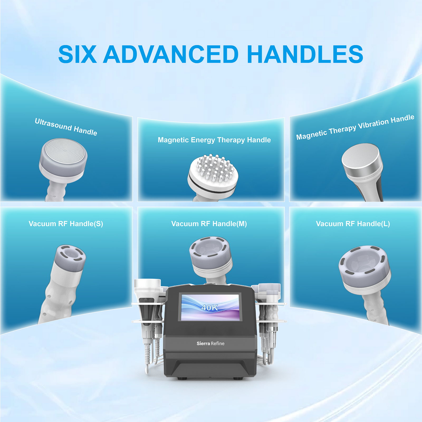 Three Vacuum RF Handles: Equipped with varying suction levels, these handles are suitable for different areas from thighs to face, and help improve the appearance of loose skin and cellulite.