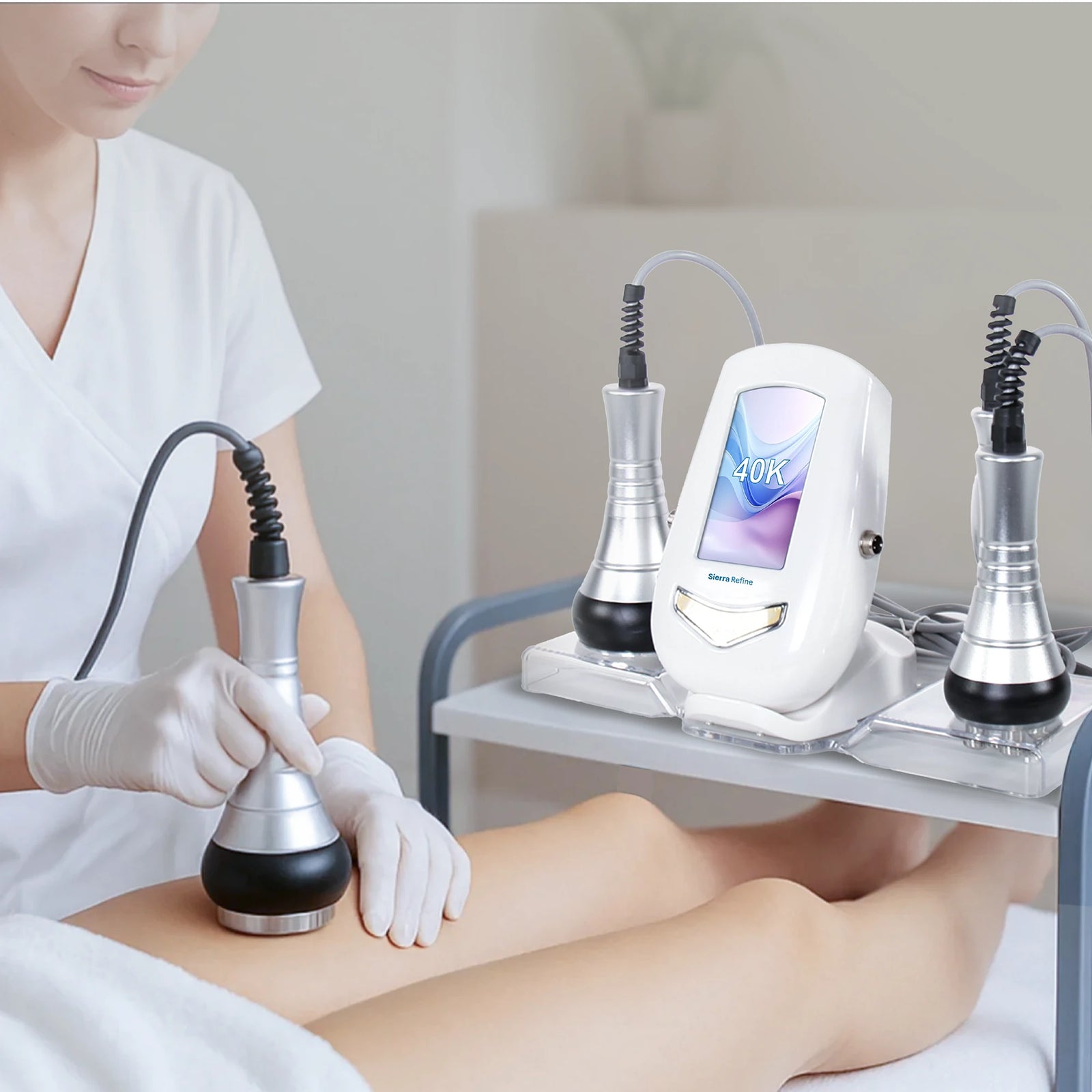 This device combines cavitation and radio frequency (RF) in one streamlined system, allowing salons to deliver more complete body contouring treatments without investing in multiple machines. By pairing fat-focused cavitation with RF skin conditioning, treatments feel more balanced and results more refined.